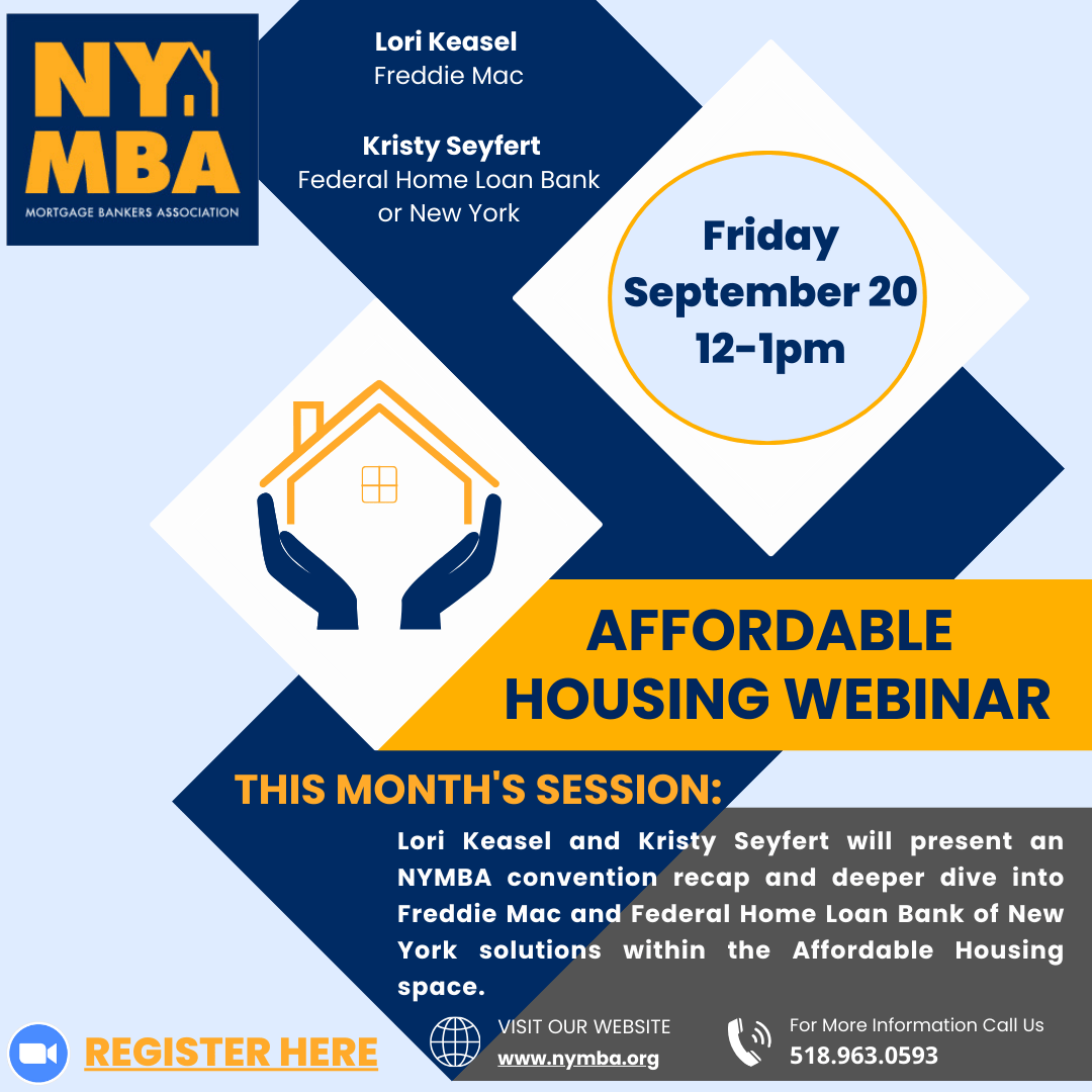 Affordable Fridays is a hybrid series designed to educate lenders on affordable housing programs and grants that aim to increase home ownership in New York State. Affordable Fridays will feature industry partners and stakeholders to highlight programs and products available throughout New York State. The series will be held on the third Friday of each month with the next session taking place on Friday, May 19 with Jennifer Jackson from USDA.